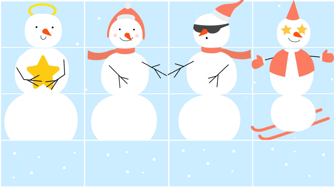 Il s’agit d’un jeu à imprimer qui peut s’utiliser dans toutes sortes de situations impliquant la réalisation de tâches par l’enfant : à chaque fois qu’une tâche est réalisée, on retourne une carte. S’il s’agit d’un morceau de bonhomme de neige, on le garde. Lorsque notre bonhomme est complet, on gagne la partie!