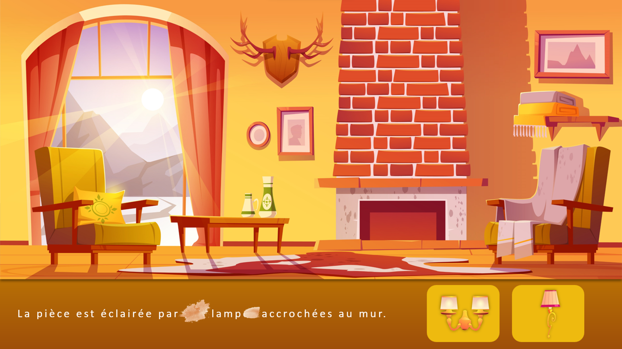 Un salon très douillet : Une scène à compléter, dans laquelle l’enfant lit des phrases dont certains mots sont cachés. Il doit alors se saisir des marques morphosyntaxiques visibles pour compléter la scène (accords de l’adjectif, du nom, du verbe…) TELECHARGEMENT